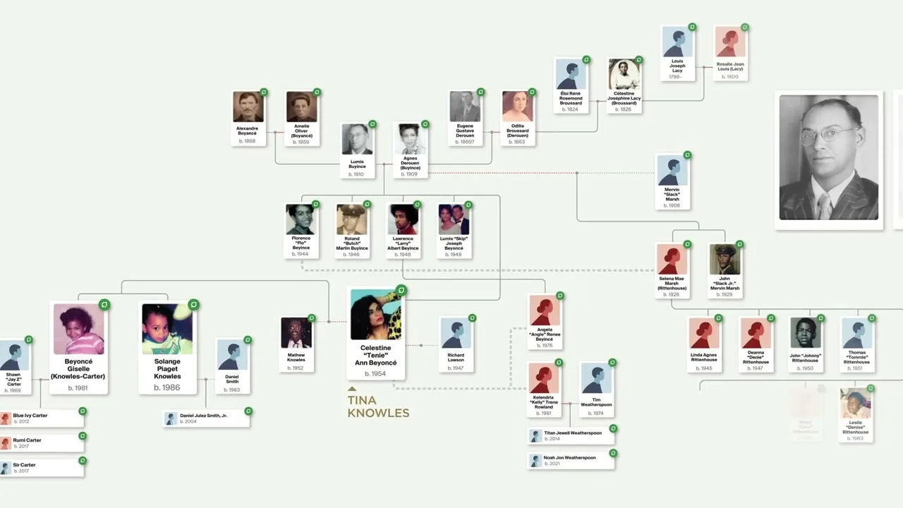 Ancestry designer Chris Trainor built this family tree for Tina Knowles. I made this simple animated version for Tina's social channels, which she used to promote her book tour, which was sponsored by Ancestry.